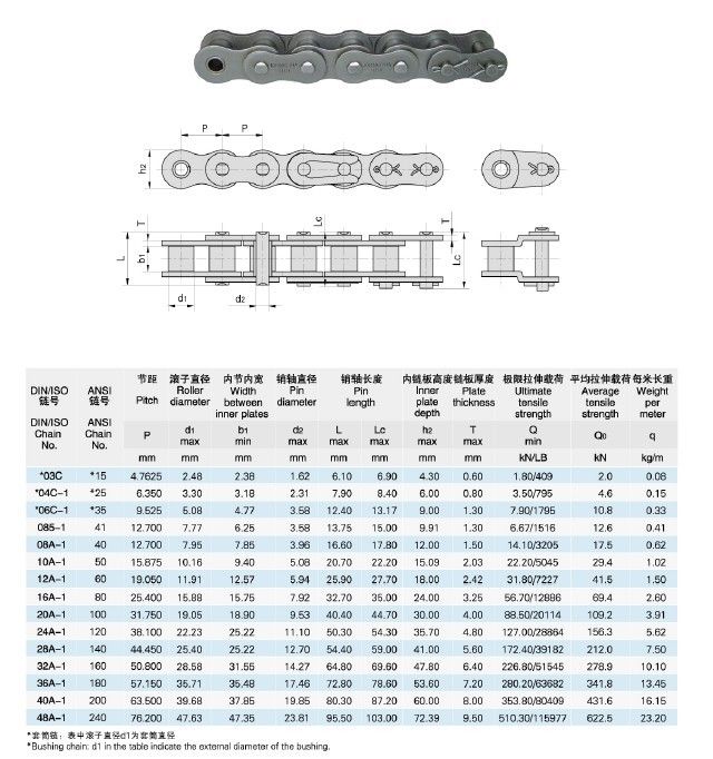 Приводная роликовая цепь одинарная однорядная